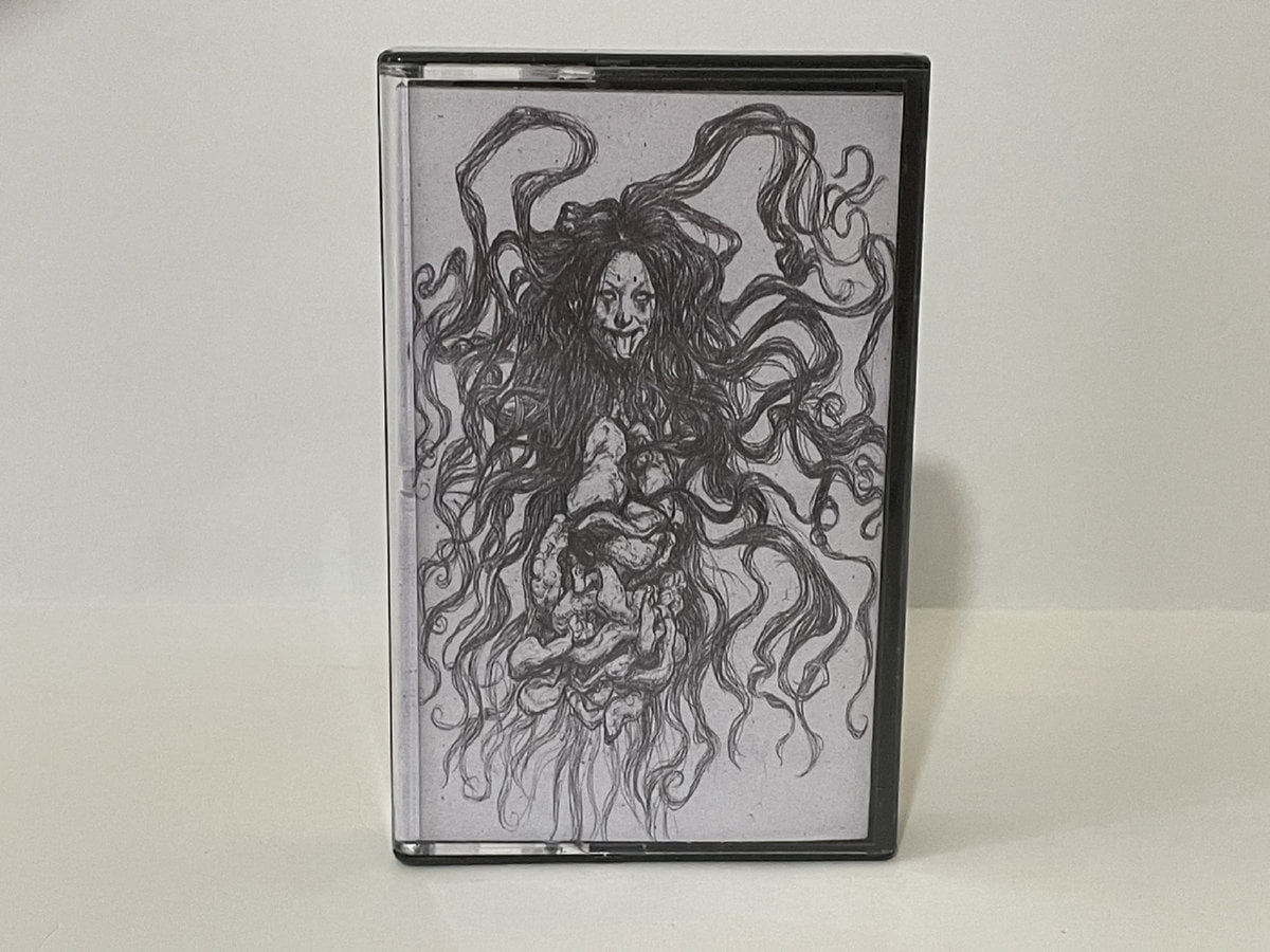 Black cassette with hand cut, hand folded j-card on watermarked cotton paper.